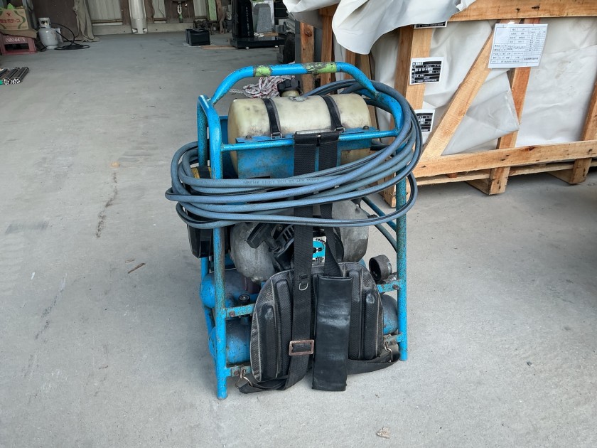 工場で彫る分には備えつけの大きなものが使えますが、現場の、例えば高台のうえにある墓石に彫るとなると、持ち運びに便利なリュックタイプのコンプレッサーが大変便利です(画像参照)。