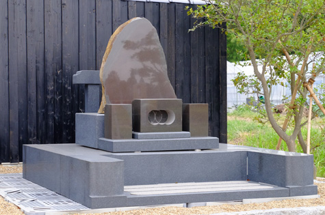 背丈が低い、芝生で整備された敷地にふさわしい墓石です。芝生の緑が明るく映え、 墓石丈が低いことにより解放感があります。欧米で主流の墓石です。